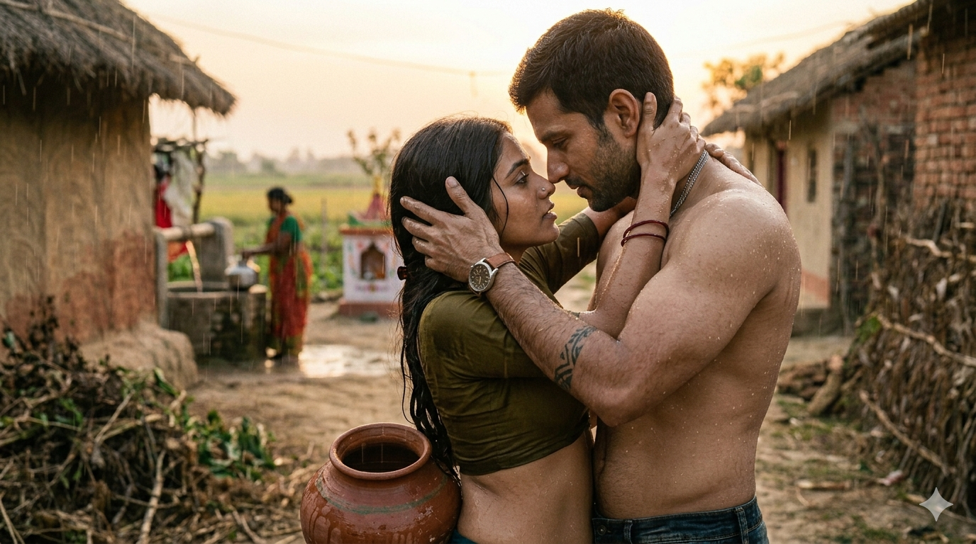 The storm outside had escalated into a full-scale monsoon rage, the wind howling through the cracks in the wooden shutters like a wounded animal. Inside the small room, the heat was suffocating, thick with the scent of spent kerosene, rain-drenched jasmine, and the salt of two bodies pushed to their absolute limits.