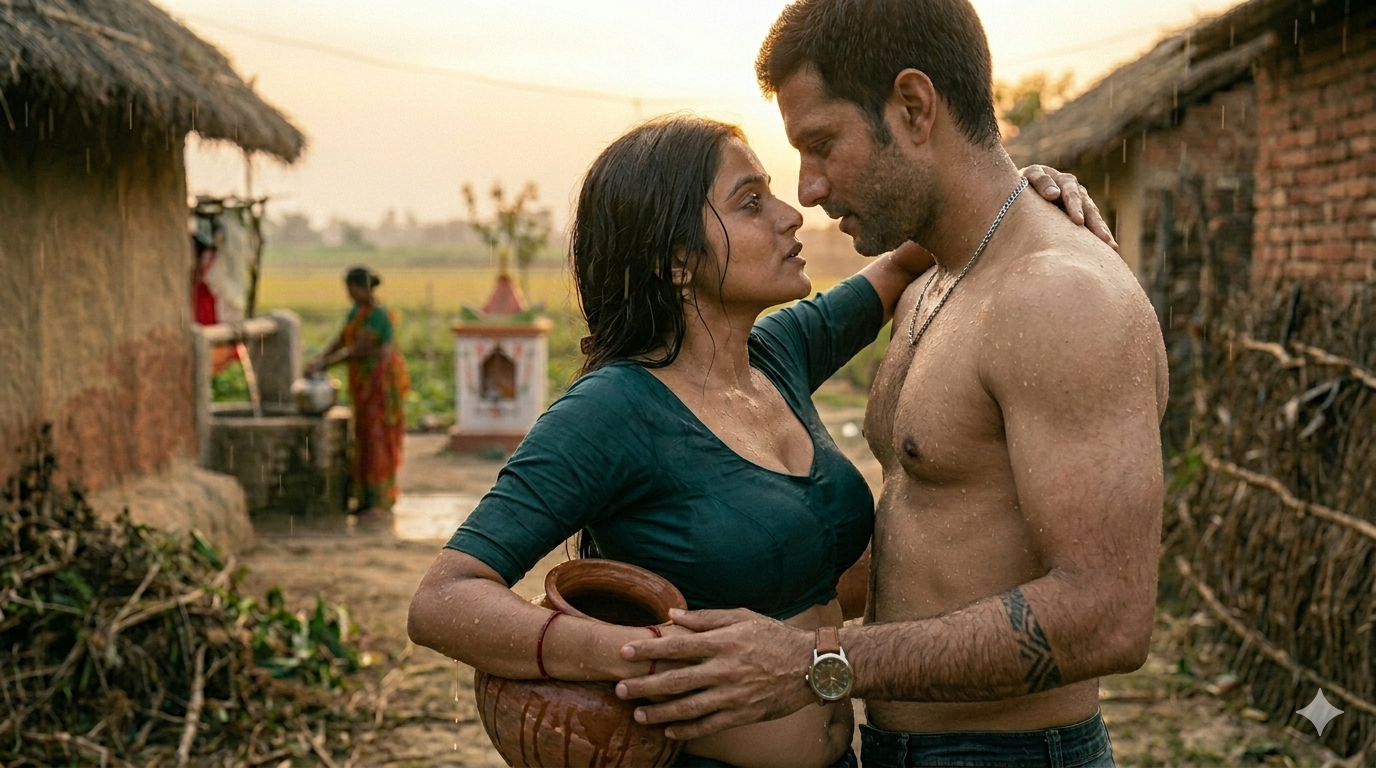 The rain outside had turned into a relentless, rhythmic drumming that seemed to pulse in time with the blood roaring in Shivom’s ears. Inside the small house, the air was a thick, cloying cocktail of sweat, salt, and the iron-rich scent of a desire that had crossed the line into something primal. The single, flickering lamp was now nothing more than a dying ember, casting long, monstrous shadows of Shivom’s powerful frame against the peeling walls.